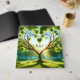 Create a modern, romantic guest book for your wedding! This wedding guest book features trees with a majestic tree in the center along with green and heart accents. Choose your desired monograms to display in the center. Add the date of the wedding. You can also customize the spine and back text. Use the template to create your own monogram wedding guest book.