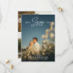 Double sided save the date card with a romantic typography design focused on the wedding date atop a photo of the happy couple. Add three more photos to the back in a clean collage along with a QR code to your wedding website. Save the date template card personalized with photos.