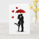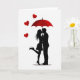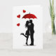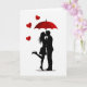 This design shows a couple in black silhouette standing close under a bright red umbrella as they share a gentle kiss 🥰. The woman’s hair flows back a little, and she lifts one leg in high heels, which makes the moment feel sweet and a bit flirty. Her arm wraps around the man’s waist, and his stance leans in like he’s holding her steady and close. Three small red hearts float near the upper left, echoing the umbrella’s color and drawing your eye upward. The background is plain white, so the dark figures and red details stand out right away. There isn’t any text on the front, which lets the picture carry the message without distraction. It feels meaningful to give because it captures that quiet, protected feeling of being close to someone you care about ❤️.