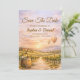 Celebrate love with this elegant Save The Date design featuring a vineyard at sunset, warm skies, and charming hot air balloons. Perfect for couples planning a Napa Valley or destination wedding, this card blends rustic romance with timeless beauty. The vineyard path, floral barrel, and glowing lantern create a serene atmosphere, making it an unforgettable way to announce your special day.