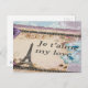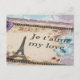 Romantic vintage Eiffel tower, this design has an Eiffel tower silhouette and beautiful blue flowers with typography text in french. On the left side you see an purple hot balloon.