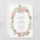 Romantic Vintage Pink Roses Wedding Invitation. This elegant and stylish wedding invitation features beautiful hand-painted watercolor blush pink roses with sage greenery arranged into a chic vintage wreath. The back of the invite includes the bride and groom's monogram.