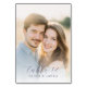 This wedding table card features a romantic and tender design with a close-up photograph of two individuals, creating an intimate atmosphere. The color palette includes soft, warm hues like light beige and creamy whites, enhanced by natural sunlight for a serene glow. Elegant cursive script and clean sans-serif typography are used to display the table number and names, adding a touch of sophistication. Perfect for weddings, this card captures a candid moment with a focus on authenticity and emotion, making it ideal for setting a loving ambiance at your special event.