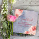 Classy and elegant personalized wedding guest book featuring vintage pink roses on a pale lavender watercolor background. The text is completely editable. Use the Personalize option to make changes. To make more changes, such as font, font color, or text layout, use the Edit design tool.