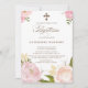 Romantic Watercolor Flowers & Cross Baptism Invitation