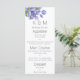 This elegant and romantic menu features a floral design with watercolor lilacs. A bunch of beautiful purple lilac flowers is placed in the top right. You can replace the menu items with the food options of your choice. It's suitable for a breakfast, brunch, lunch, or dinner event, or for a wedding or banquet.