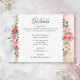 Lovely clusters of elegant watercolor blush pink roses and green foliage on a subtle pastel watercolor background and custom label with gold borders. Features calligraphy "Details" text graphic in custom script font (or delete and customize in the design editor) with editable text fields for your wedding details.