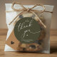 Modern Wedding minimalist Thank You Cookies Gifts Classic favors Round Sticker, in romantic script, little heart, with bride and groom signature and wedding date, olive green theme.
