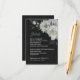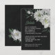 Unique wedding enclosure card featuring romantic white flowers and green leaves on black background.