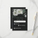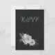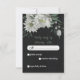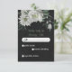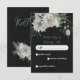 Unique response card RSVP featuring romantic white flowers and green leaves on black background.