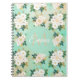Romantic White Flowers Mint Watercolor Design Notebook