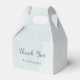 Beautiful botanical wedding favor box featuring romantic white, dusty blue and navy blue flowers with green leaves.
