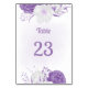 Romantic table number card featuring white and purple flowers.