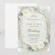 Romantic white roses Eucalyptus Greenery and Gold Invitation