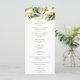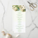 Beautiful, romantic wedding program with white roses and green, elegant font.