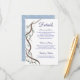 Details card for the Romantic Winter Snow Tree Branches wedding suite. The design features watercolor tree branches with pine needles forming an arch around navy blue words. Snow on a blue sky is featured on the back. Imagine a sleigh ride through a winter arbor.