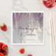 These beautiful wedding napkins feature a romantic wisteria floral design. Realistic, 3D looking wisteria hangs across the top portion, against a white stucco wall. The flowers cast shadow behind them from the sunlight. It's a modern and elegant design that's perfect for your special day. Sample names of a bride and groom are printed across the center in an elegant script font, followed by a sample wedding date. You can personalize the napkins to include your own custom names or other text.