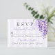 Lovely wedding response card features lavender and white stripes with a Wisteria floral design in the upper right hand corner. Text is easy to update and features space for your desired response date, name(s) of guests, attendance, and menu options.