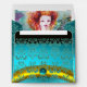 Original contemporary watercolor painting with golden foil and iridescent colors in bright green,yellow orange , teal,turquase, white .Elegant ,beautiful sophisticated brunette woman,red,green sparkling gold fabrics of a baroque costume with peacock feathers .Painting by Bulgan Lumini (c).This cool and artistic card is perfect for weddings,bridal showers,sweet 16,quinceanera birthday parties,costumed dance balls,,romantic engagements,save the date announcements,cocktails,celebrations,anniversaries,gatherings,