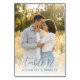 This wedding table card features a romantic photograph of a couple standing intimately in an outdoor setting, surrounded by tall grass and trees. The warm color palette of soft yellows and greens creates a serene ambiance, while the neutral grays and whites worn by the subjects add to the natural aesthetic. Elegant cursive typography highlights "table 12," with simple sans-serif text for customization, making it perfect for personalizing your special day. The design captures a tender moment, ideal for celebrating love and connection at weddings or intimate gatherings.