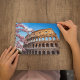This painted postcard features a colorful painting of the Colosseum in Rome, Italy.