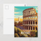 Celebrate the grandeur of Rome with this striking postcard featuring an illustration of the iconic Colosseum. This postcard captures the timeless beauty and historical significance of one of Italy's most famous landmarks. Perfect for sending greetings from Rome or as a cherished keepsake of your travels to this ancient city