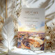 Celebrate your upcoming wedding with this elegant "Save the Date" invitation featuring a watercolor view of Rome, Italy. The front showcases a beautifully illustrated aerial view of the iconic Colosseum, bathed in warm shades of golden yellow, terracotta, and soft blue sky, capturing the timeless allure of the Eternal City. With sophisticated typography and a dreamy, artistic touch, this invitation is perfect for couples planning a destination wedding in Rome. Set the tone for a romantic Italian celebration with this unforgettable design.