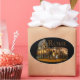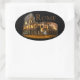 The incredible Roman Colosseum has stood for almost 2000 years. It is said that should the Coliseum fall, so shall Rome. The southern portion was partially destroyed in an earthquake. In this photograph, the imposing structure is illuminated in the black of night. This oval shaped sticker is fully customizable.