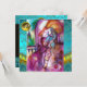 Balcony scene from Romeo and Juilet tragedy by William Shakespeare .Original contemporary watercolor painting with golden ,silver foil and iridescent colors in bright purple ,pink,green,yellow orange , teal,turquase, white .Painting by Bulgan Lumini (c).This cool and artistic card is perfect for weddings,bridal showers,anniversary parties,costumed dance balls,,romantic engagements,save the date announcements,cocktails,celebrations,anniversaries,gatherings,