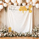Arrived quickly and looked great! Had to steam out the wrinkles from shipping but it was easy to do! I added gold curtains to the sides to extend the photo backdrop area. I changed the color to royal blue! Perfect! The printing looked just like the photo online! Excellent job!