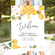 This bridal shower welcome sign features rustic white florals and watercolor honeycomb and bumble bees and a cute handwritten script font. This sign is the perfect addition to your fall farm themed bridal shower or bridal brunch.