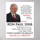Make sure to write-in RON PAUL for president this election, because if you don't you might regret it! McCain, and Obama voted for FISA, and now the Banking Bailout that had a slew of wastefull ear-mark, pork-barrel spending. Our economy is in jeopardy, and congress is still playing games! Let's show them that we are serious. Let's vote in a true American hero. Let Write-In RON PAUL for president 2008!