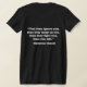My overall review is that the T-shirt is nice, it fits true to size however the font is significantly smaller than advertised and you can't read it. The printing is unreadable and there is a strain to read it. It does not look like the advertised product. Maybe the shirt color is darker or a larger more visible font should have been used. Photos with and without flash and font is barely legible.
