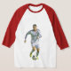 I bought the Men's Basic 3/4 Sleeve Raglan T-Shirt, White/Navy. It arrived on time for a gift and is of a great quality and fits perfectly! So cute! Zazzle has done it again! The printing was clear and filled in solidly.