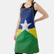 Great color and even though I ordered the kid size, it covers well enough to use during the holidays. I am not a big woman and prefer a shorter apron. I stand 5"6" and the length of the garment goes to mid-thigh. The tie straps fit well at my waist and even though there is no neck strap adjustment, the opening is plenty big enough. I am happy with the size and fit. I am sharing my apron with my 10 year old grandson, too! The color is vibrant and looks good, as shown on the website. The stitching looks strong and reinforced. Photographed is front side and back side of the apron, reinforced straps and coloring. My phone camera may not be the best at showing the details.