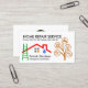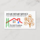 Cover features a red rooftop building that is need of repair. Beside it is a brown handyman construction tools tree where each icon can represent some of the services you offer e.g. the hammer-spanner can represent home remodeling, the washing machine for electrical repairs etc. At the top of the card is the business name "HOME REPAIR SERVICE" which you can change and its contact details. Your prestigious name and job title are at the base of the card, beside the green ladder.