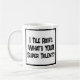Funny slogan on a mug that says "I Tile Roofs. what's YOUR super talent?". Mug for a Roofer. Black and white bold text.