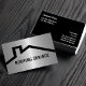 Simple roofing business cards with a house roof, along with text you can easily customize online and cool metallic looking background printed on the front. A simple yet powerful design with plenty of room for a logo if you want to add yours. Designed for a roofing company, roofer, or remodeling contractor.