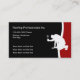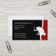 Modern simple roofing construction business card template designed with a workman with a hammer in his hand and red, black, and white color combination that presents well for a roofing service, remodeling company, or independent contractor.