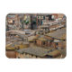 Rectangular souvenir photo magnet of the orange clay tile roofs in medieval architecture seen from above from the Torre del Mangia at the Piazza del Campo in the old historic city center of Siena, a town in Tuscany, Italy.