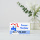 Cover features a red rooftop building with a leaking blue faucet. To its right lies your business name in blue with the contact details in a blue layer near the base of the card.