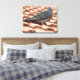 This awesome canvas print features a photograph of a wild Pigeon sitting on top of a roof. The pigeon has beautiful mottled plumage and looks very content upon its rooftop perch.