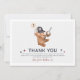 Thank guests for coming to your little one's 1st Birthday with this card. This design features a sweet watercolour bear with a balloon and baseball accessories. You can edit the initial on the baseball cap to customise it for your child's name, the number in the balloon and add your message across two font styles at the bottom.