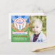 This adorable baseball theme one year old birthday party invitation postcard is perfect for the littlest baseball fan in the family! Start the celebration for your little rookie with this fun card. Simply customize the name and party information, add a photo, and it's game on - You can even customize the colors to match your favorite team colors!