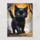 Embrace the enchantment of Halloween with our endearing black kitten, nestled amidst the splendor of autumn. A bewitching companion, this cute feline brings a touch of magic to the season.