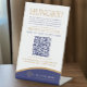 Inform your guests on how they can order food to their room with this simple navy blue and gold colored curve on a white background friendly QR code sign food room service in house catering sign. Ideal to get your guests in the mood for food, plus helps raise awareness that you offer food, to keep them dining with you, great to put directly in to rooms of hotels, motels, and other accommodation were you have food as an extra option. Logo can be replaced with your own logo if required or you can use ours. Other matching property business signage and marketing items are available and can be created by request. Original graphics and design by www.mylittleeden.com on Zazzle.