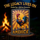 This lighter features a carved, high-relief image of a brightly colorful rooster perched on a wooden fence. The farm animal stands in front of a brilliant orange and yellow sunburst, suggesting the morning or sunrise. The word "AMERICA" is carved in large, raised, orange letters across the bottom of the design. The rooster has striking blue and orange feathers and a large red comb. The design is set on a matte black lighter casing. The design may look real due to the high detail in the artwork.