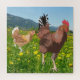 This is the third of three versions of a lovely colourful jigsaw puzzle that will bring a breath of the countryside into your home. It shows a jaunty rooster running away from a hen who has turned the tables on him, fed up with his advances, in a Spring flower meadow that I spotted in France and sketched.