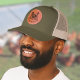 Custom Leather Patch Hat, Sytle: Adult Retro Trucker Cap, Color: Heather / Black, Shape: Circle