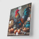 Rooster and Eggs Square Wall Clock